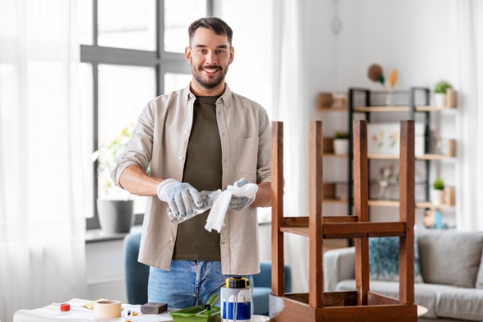 Ventilate the workspace thoroughly, especially when using chemical strippers or heat guns. Open windows and doors or use fans to circulate air. Wear protective gloves, safety goggles, and long sleeves to prevent skin contact with solvents and splashes. An N95 mask or respirator is recommended to avoid inhaling harmful particles or vapors.